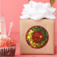 Add Name Year Christmas 20xx Gold Wreath on Red Classic Round Sticker