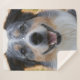 The fabric is really soft, and thick, I’m sitting here with it wrapped around me and it’s so warm! It’s really smooth and sleek on the printed side and fluffy on the back. I love it! Such good quality, so vibrant and clear, not blurry at all! See the photos I’ve attached, there’s no filters or anything on them!