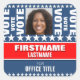 Customise this red, white and blue with white stars campaign template round sticker. zazzle.com/CampaignHeadquarters