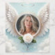 Add a photo to this comforting memorial design with a rose, angel wings and clouds.