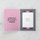 This card is great fun and good quality. I loved the humour inside and on the back. There is the opportunity to change the orientation of this card from landscape to portrait, which I did. It is relatively straightforward to amend the typeface to fit the new orientation. It was well packaged with no plastic. The printing on this card is excellent.