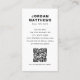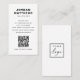 White or custom colour, modern, professional business card design with template fields for name, company name/title, logo (photo or other graphic), QR code and contact information. Change background colour, move and resize elements with the customisation tool.