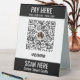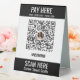 Display your electronic payment methods customers can scan and pay directly through the Venmo app. What is Venmo payment? Venmo is the new easy payment method customers love to use. Tabletop PAY HERE signs are just one of many craft show table display ideas you can use to increase sales. Add your own Venmo QR code image to this tabletop Pay HERE sign. Make it easy for customers to pay you at your next craft show or pop-up event. Your craft show display booth can be even more successful when it is easy for your customers to pay you. Customise with your craft business name and phone number. This pink sign is designed with woman-based businesses in mind.