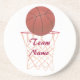 Painting of basketball going in to the basket, with a placeholder for a team name, is printed on beverage coasters. Easily customise with a team's name, coach, etc. on the template form.