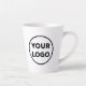 Increase your marketing by sharing your business logo on both sides of a branded latte mug. Replace the sample company logo with your own in the sidebar. Your logo can be in color or black and white. It can be circular, square, or another shape. Makes a great gift for customers or drinkware for your cafe.