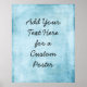 The background is covered in a scratched, distressed, vintage grunge graphic in subtle teal. Over that, a template field was added for your text. Use this space to add your favourite quote or sentiment. Maybe it's funny. Perhaps you need a poster that motivates you. Whatever your reason, make this design your own. The font can be changed if you prefer. Another version featuring this background but with an alternate font is also available.