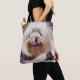 Cute all-over-print tote bags - you can add your favourite dog photo. Tote bag is made of polyester and measures 16 inches by 16 inches and the strap measures 28 inches.