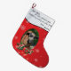 A gradient red background with snowflakes and an Oval frame for your goat's Photo, with a ribbon tied candy cane bough at the bottom - This Christmas stocking has this message written in childlike hand writing: Dear Santa, I have been a good little goat. Please fill my stocking with goatie goodies. Love (and you sign your goat's name) - Adorable for those eccentric goat owners.. like me :)