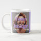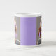 This is a large white mug, a jumbo mug with a space on each side for an image. There are two pictures on the mug that can be replaced with your photos. When you click the Personalise button you can click a place to add an image. This is a ceramic mug that holds 20 ounces. The mug can be printed with your photos or graphic designs. The mug is microwave and dishwasher safe. These jumbo mugs meet the FDA requirements for food and beverage safety. These personalised coffee mugs will make perfect unique gifts for friends, family and coworkers.