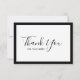 This thank you card has a white rectangle centre and an editable border colour (click customise and change background to change the border colour from black to a colour of your choice) on the front On the back you can add your logo, your thank you message and your other details.