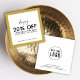 This discount card has a white square center and an editable background color (click customize to change) on the front. On the back, add your logo and your contact details.