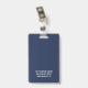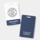 Add your logo to this simple navy blue and white badge to create custom branded name tags for your employees. Customise with a name and title, and add your business address or additional information to the reverse side in white on navy.