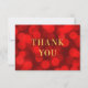 Thank You card featuring the words "Thank You" in faux gold foil against a ruby red bokeh lights pattern background on the front. On the back you can add you logo and other information. This makes a great thank you card to include in your customer's order package.