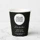 Add your Logo with Custom Text Company Promotion Black Paper Cups. Insert your logo into the template and customize the text, company name, address and contact information. Business promotion or giveaway for your clients and business partners.