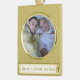 Banner Ornament - Gold Plated Capture wonderful family memories with this elegant banner ornament. Add your favourite photos, images and personal message in the banner area. A beautiful gold ribbon makes it easy to display this fantastic keepsake on your tree year after year. Dimensions: 2.4" x 1.95" x .08". Photo is permanently sealed. UV resistant. Includes a gold ribbon Gold coloured metal ornament.