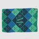 Add Your Monogram | Blue & Green Argyle Pattern Golf Towel