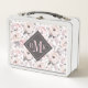 Add Your Monogram | Classic Pink & Grey Pattern Metal Lunch Box