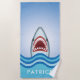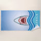 If sharks can be cute, this one is. Funny cartoon image of a great white shark leaping from the waves with jaws agape.