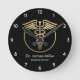 Add Your Name Medical Caduceus Symbol Black Gold Round Clock