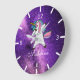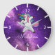 ADD YOUR NAME/Purple Space Dabbing Unicorn Square Large Clock