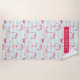 Add Your Name | Retro Flamingos On Mint Stripes Beach Towel