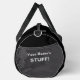Add Your Name and 1 or 2 lines - eg "Stuff" or "Tennis Stuff" on this Duffle Bag - Change it to 'Stuff, Things, Junk etc" - see lots more colours.