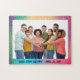 Many sizes and piece count are available. This is a 11"x14" rectangle horizontal photo puzzle. Change orientation to vertical photo and easily change, move or delete text and background using the Design Tool. Ideal for reunions, cousin sleepovers and family gatherings.