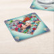 Add Your Picture | Floral Heart Frame Square Paper Coaster