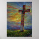 Add Your Scripture Christian Wooden Cross in Field Poster