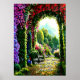 Add Your Text, Pathway with Red Mauve Flowers Poster