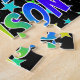 This vibrant, fun, birthday-themed jigsaw puzzle design features the message "HAPPY BIRTHDAY, ADDISON" with the characters having a colourful rainbow spectrum inspired gradient pattern, in addition to a lively star shapes background pattern. An exciting puzzle like this might be a fun way to acknowledge the birthday of somebody named Addison. [~Z0000468]