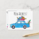 Address Announcement Blue Car with Christmas Gifts Postcard