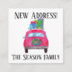 New Address Red Car with Christmas Gifts, hand painted watercolor