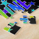 This exciting, fun, birthday-themed jigsaw puzzle design features the message "HAPPY BIRTHDAY, ADELINE" with the characters having a colourful rainbow spectrum inspired gradient pattern, along with a lively field of stars background pattern. A vibrant puzzle like this might be used to send a birthday greeting message to somebody named Adeline. [~Z0000468]