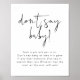 This "don't say baby" sign features an edgy handwritten font and a modern minimalist design. Easily change font colours and background colour to match your event style. Pair with additional items from the ADELLA Collection for a cohesive look.