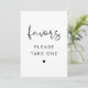 This wedding or event favour sign sign features an edgy handwritten font and modern minimalist design. Easily change the colours and edit *most* wording to meet the needs of your occasion. This sign is perfect for your contemporary, industrial, or bohemian wedding or other celebration.