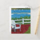 This vivid oil pastel painting features a white Adirondack chair on a red brick padiatio overlooking Cape Cod. Brilliant green, blue, red, and yellow create a stunning summer seascape on the New England Coast.