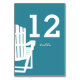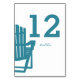 Printed table number card with teal adirondack chair design to compliment our wedding invitation set, can be personalised and ordered individually.