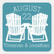 Modern beach theme wedding with adirondack chairs in white. Personalise with couple's names and special date. Change background colour as preferred.