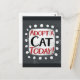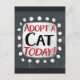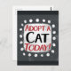 "Adopt A Cat Today" is a cute text design in grey with black and red text. It sits on a white accent shape and cute white polka dots surrounding it.