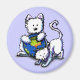 Magnet featuring westie and cat art by Illustrator, Kim Niles of KiniArt studios.