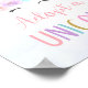 This adorable sign will be a great addition to your party. This design features a unicorn face with a pastel coloured rainbow and faux gold glitter embellishments.