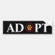 Adopt calligraphy with pet paw & hearts on black bumper sticker