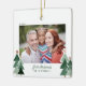 First Christmas as a Family! Perfect for Adoptions, Foster Parents, Gotcha Day, Homecoming Celebrations, or Family Day! Cute, Modern yet Rustic Christmas Holiday Photo Square Ornaments featuring adorable little forests of rustic Christmas trees and Merry Christmas in modern typography. Add 2 of your favorite photos for the perfect ornament! Please contact us at cedarandstring@gmail.com if you need assistance with the design or matching products.