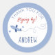 This cute " How Time Flies " boy's birthday thank you sticker features a cute aeroplane,clouds and a smoke trail. Personalise it for your needs.
