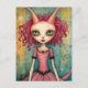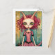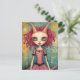 Adorable Alien Lady Mixed Media Collage Postcard