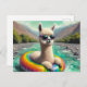 Adorable Alpaca on a Rainbow Colour Float Postcard