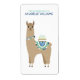 Adorable illustration of a cute alpaca carrying a stack of books.