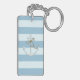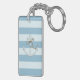 Adorable Anchor on Light Blue and White Stripes Key Ring