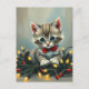 Adorable and Cute Christmas Kitten With Lights Postcard